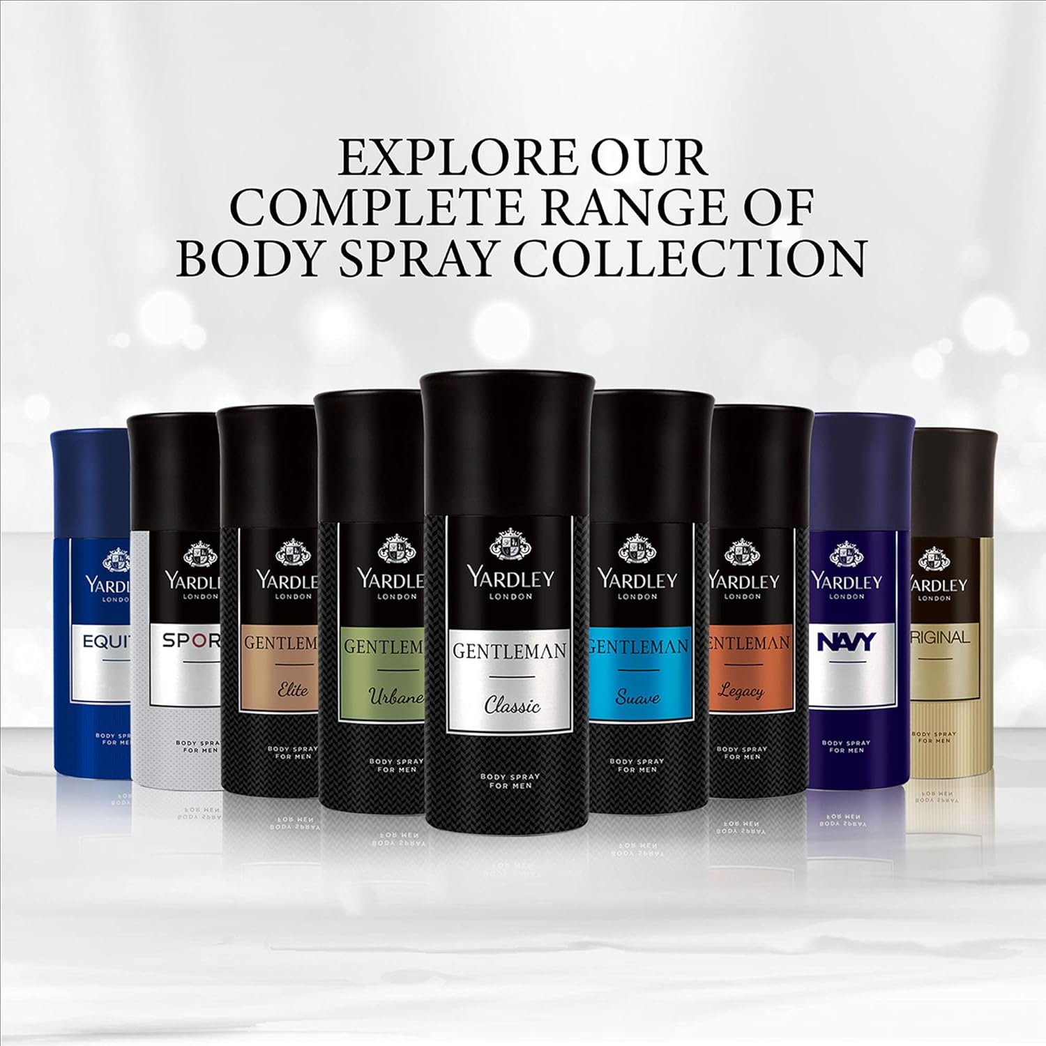 এই সংগ্রহে জেন্টলম্যান এলিট, জেন্টলম্যান লিগ্যাসি, জেন্টলম্যান আরবান, জেন্টলম্যান ক্লাসিক, ইংলিশ রোজ, ইংলিশ গার্ডেনিয়া, ইম্পেরিয়াল অর্কিড এবং ইংলিশ ল্যাভেন্ডার সুগন্ধি অন্তর্ভুক্ত রয়েছে, সবগুলিই ১৫০মিলি ক্যানে। নীচের বিকল্পগুলি থেকে আপনার পছন্দের সুগন্ধি নির্বাচন করুন।
